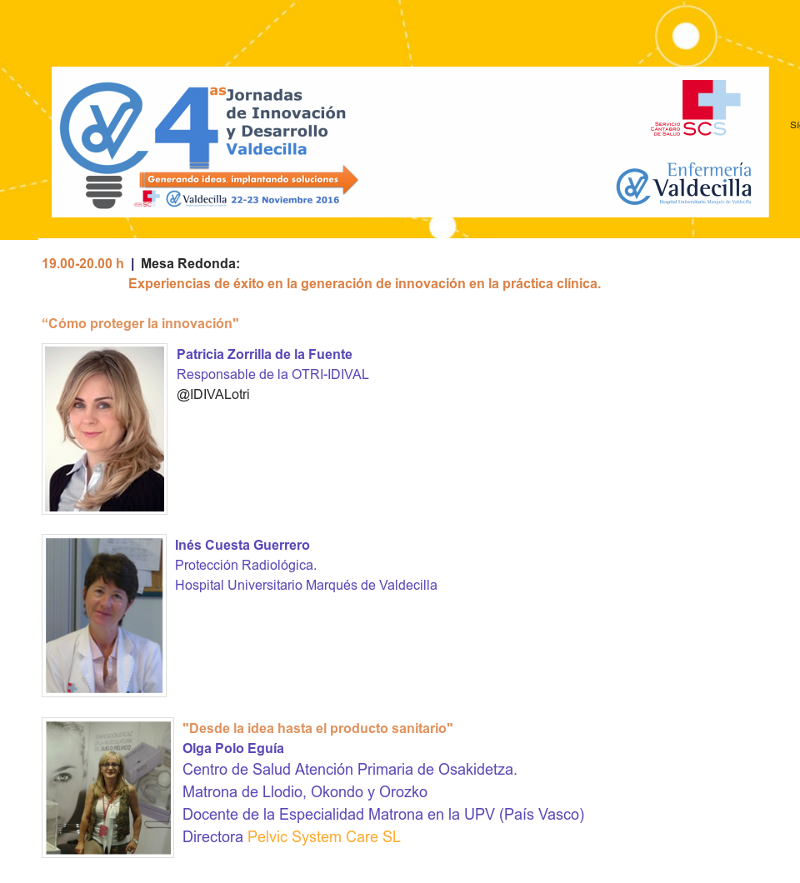 Desde mi página quiero agradecer al comité organizador de las 4ª Jornadas de Innovación y Desarrollo Valdecilla su invitación para participar en la mesa redonda del día 22 de noviembre donde expondré con el título: